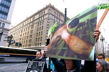 As a cold rain fell, on the third anniversary of the start of the Iraq war, one of San Francisco's busiest and prominent intersections, Montgomery and Market Street, was shut down during rush hour to protest the war.
