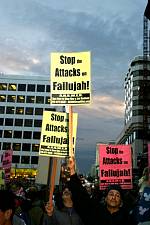 As Iraq city of Fallujah was being attacked by United States forces, San Franciscans marched through the city streets to protest the attack, the Bush administration, and the Iraq war in general.