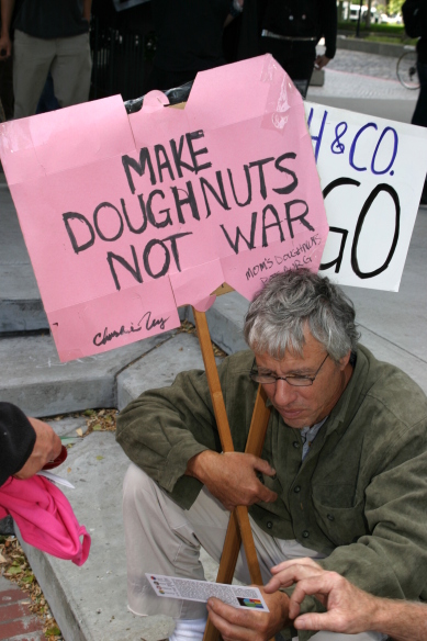 the route a small group of pro-Bush pro-war counter-protesters stopped