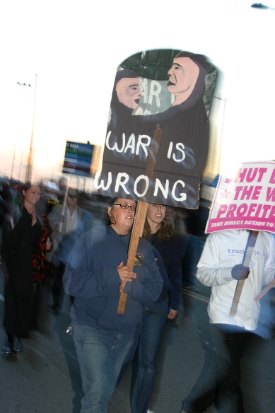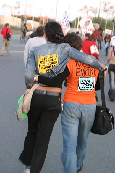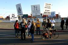 Photos from a protest and community picket held at the Oakland CA docks. The protest was held one year after the Oakland police attacked nonviolent protesters demonstrating against war profiteering.
