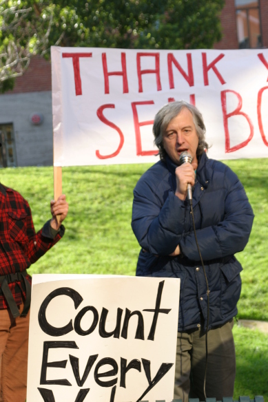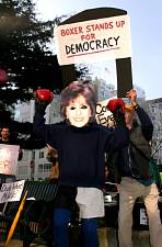 As the debate was taking place in Washington voting rights activists gathered outside of Boxer's San Francisco office to show their support for her actions.
